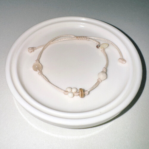 size : 기본 둘레 약 14cm 내외 / 조절매듭으로 약 4cm 연장 가능