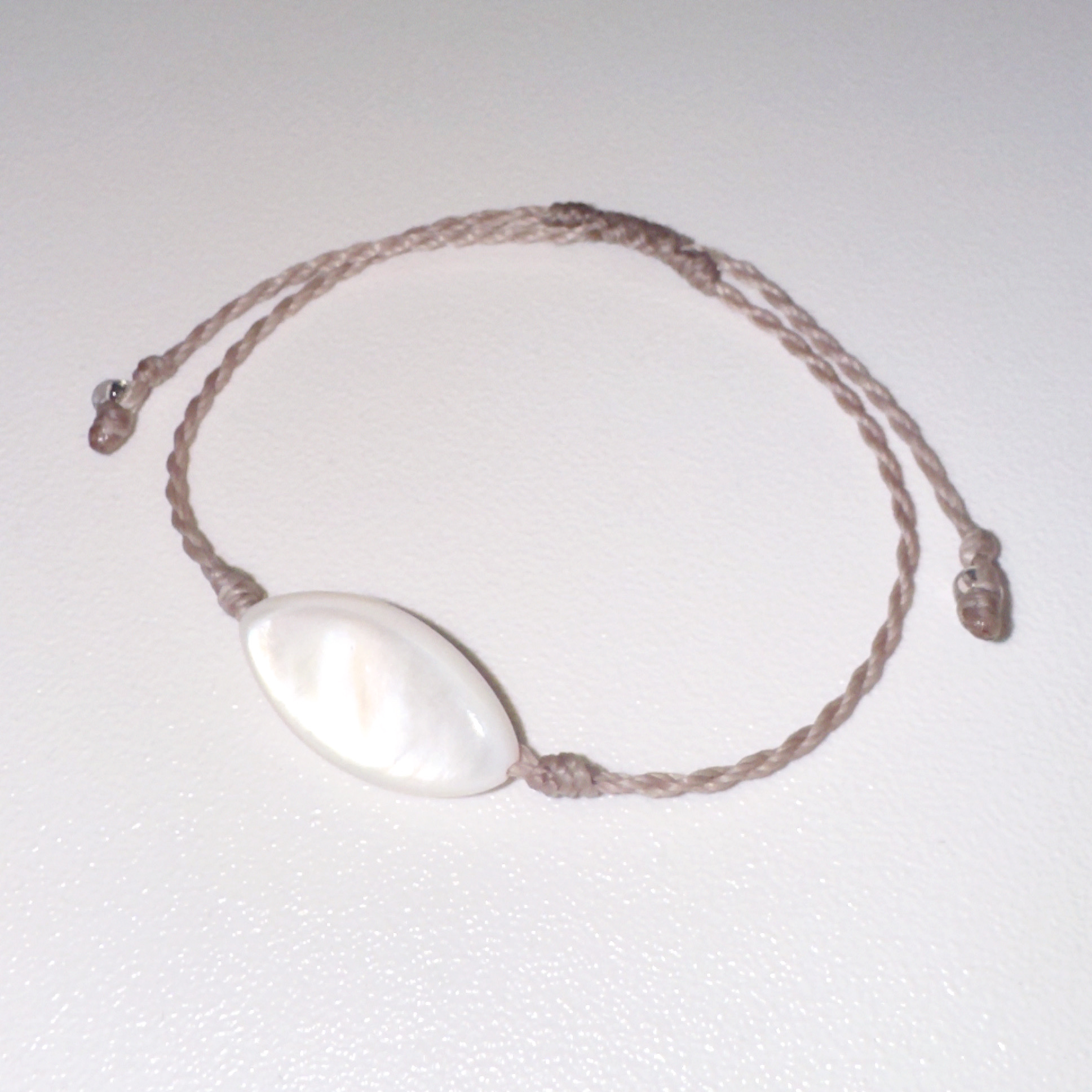 2cm 내외의 큰 아몬드 모양 자개참이 사용된 매듭팔찌입니다.