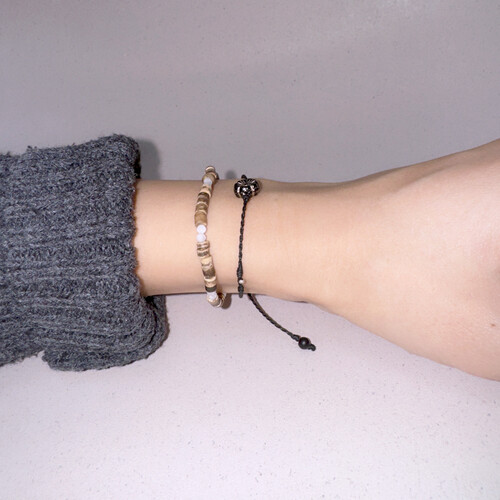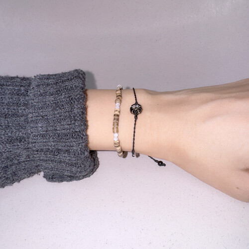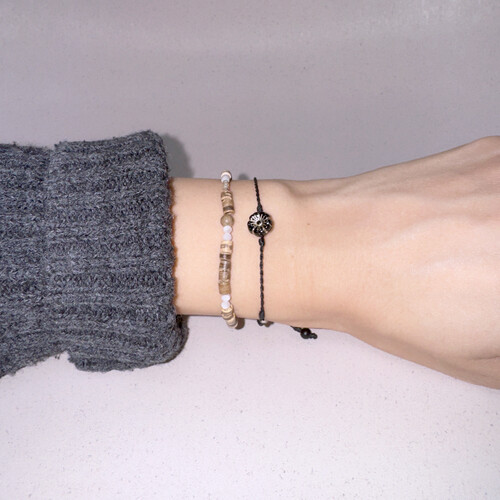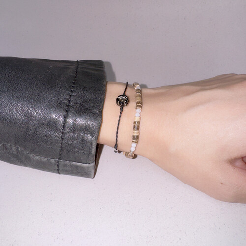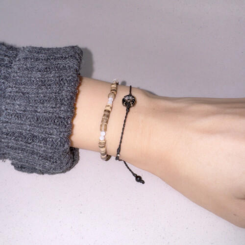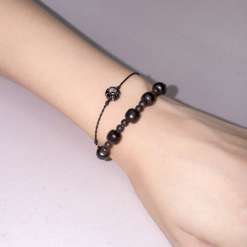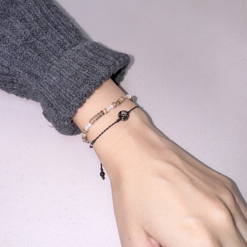 단단하게 꼬임처리 한 얇은 블랙 초실이 어우러져 심플하면서도 포인트가 되어 줍니다.