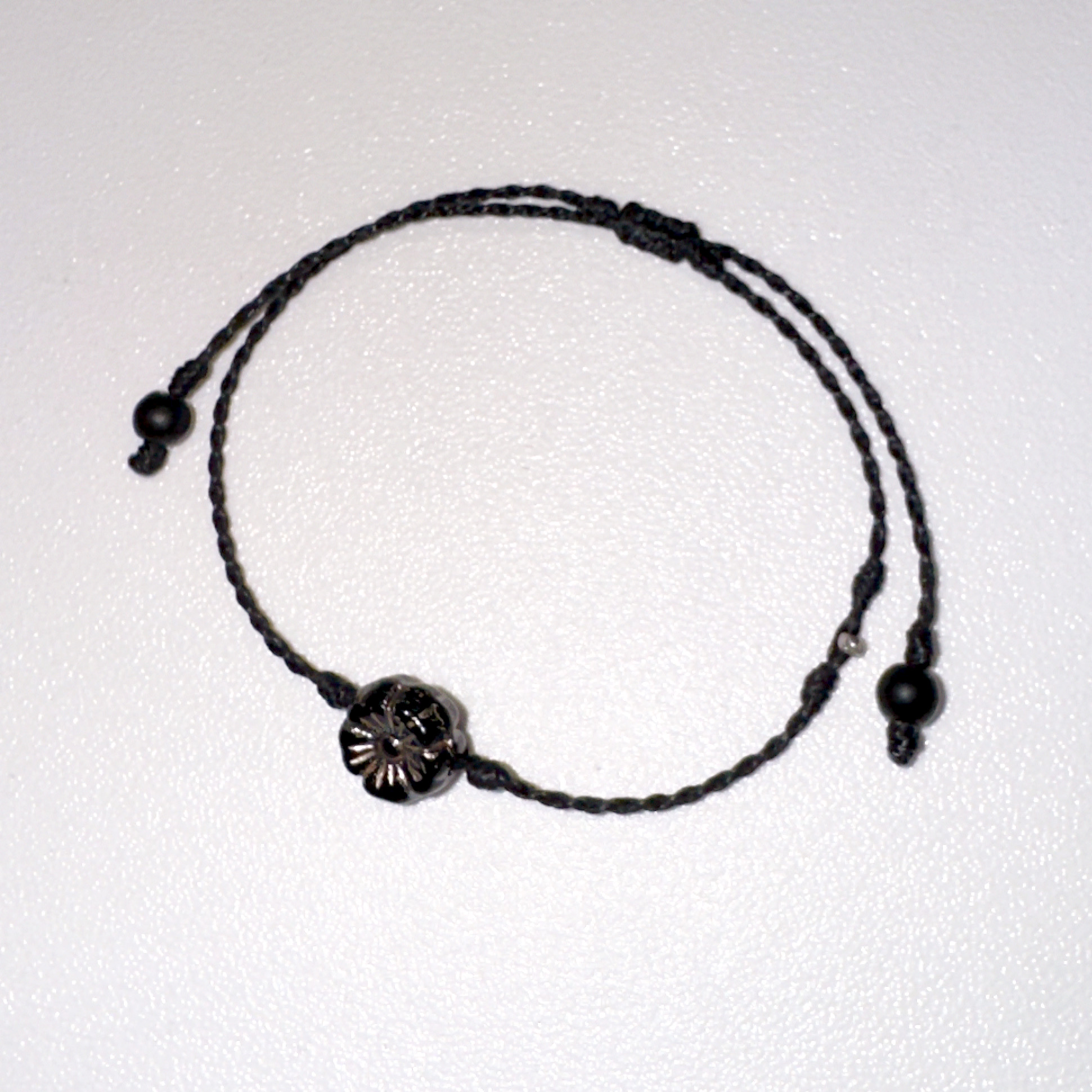 체코글래스참을 중앙에 두고, 사이드에 카렌실버 조각을 매치한 가느다란 매듭팔찌입니다.