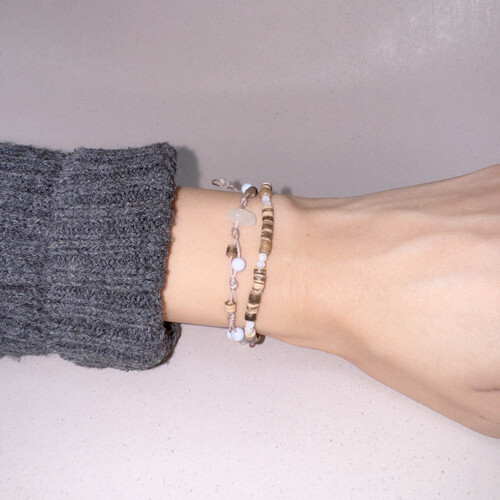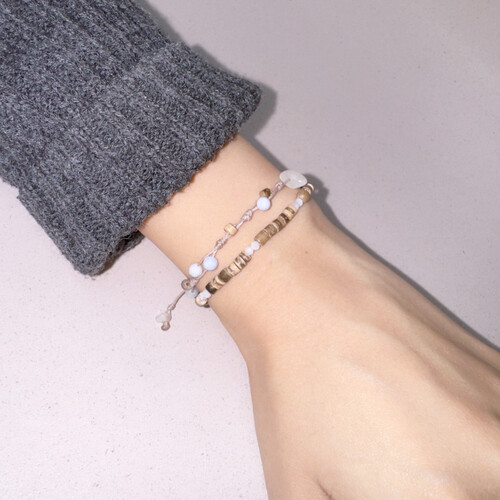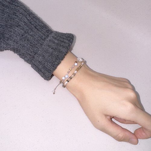 문 미스트 우드팔찌 (원석 사이즈 S) 와 매치한 모습입니다.