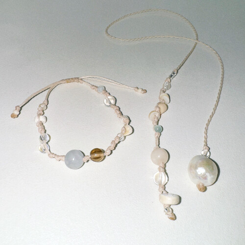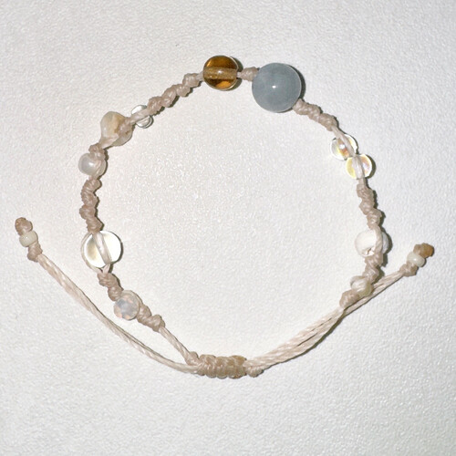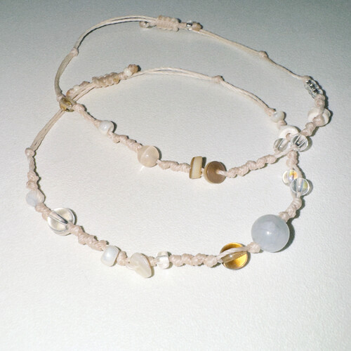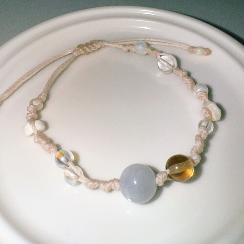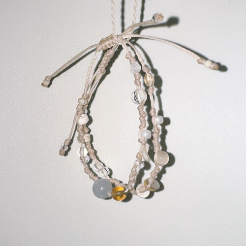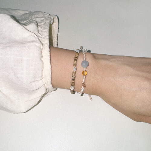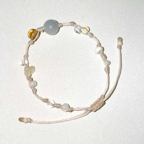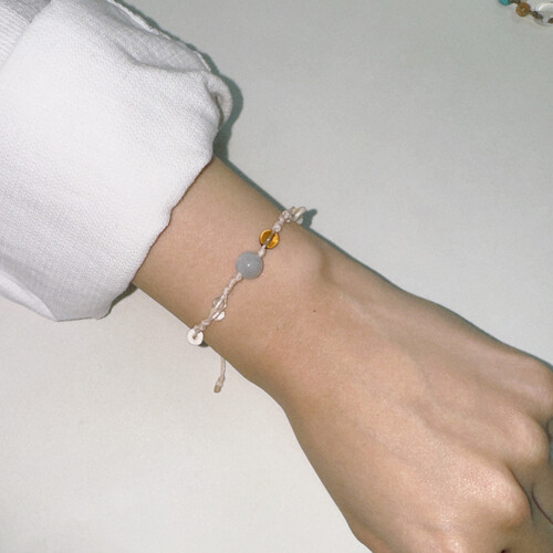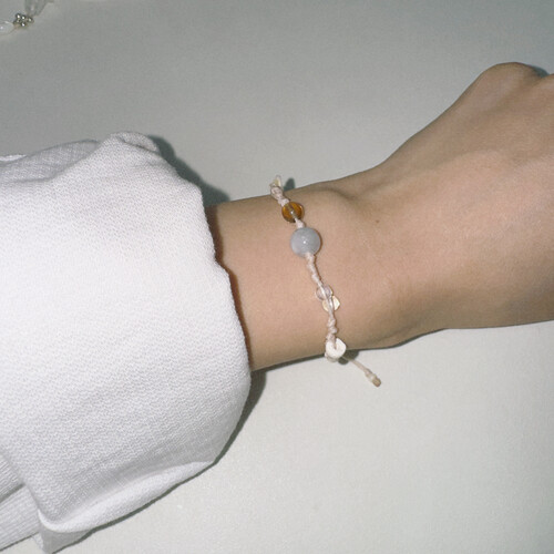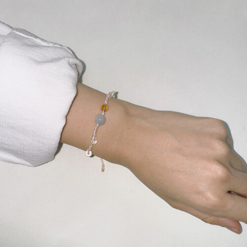 size : 기본 둘레 약 14cm 내외 / 조절매듭으로 약 4cm 연장 가능