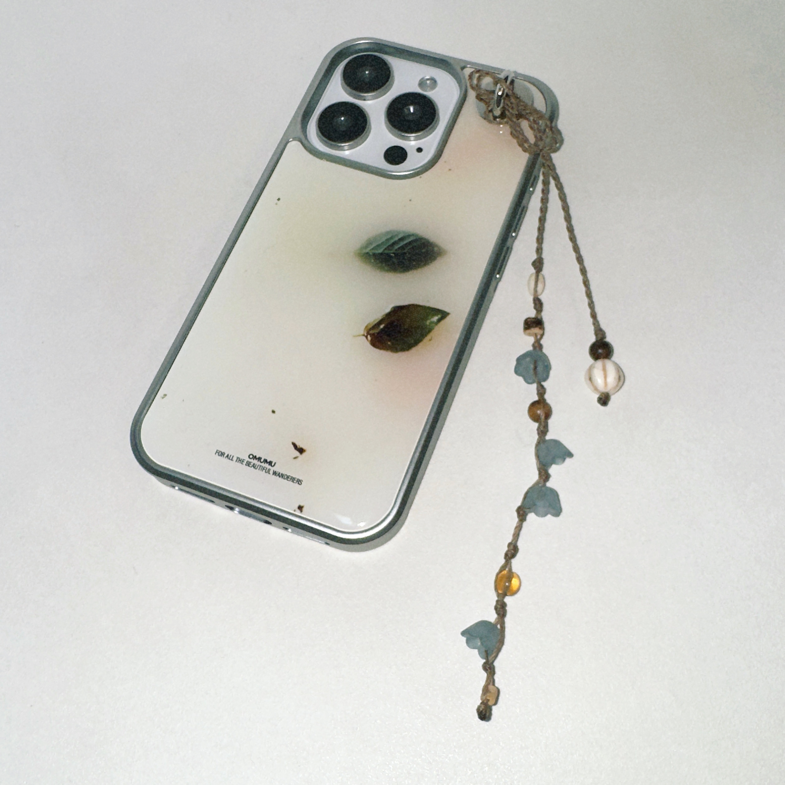 특별한 블루 컬러의 방울꽃 네 송이와 토파즈브라운의 체코글래스 비즈,