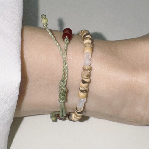 size : 기본 둘레 약 14cm 내외 / 매듭으로 약 4cm 연장 가능