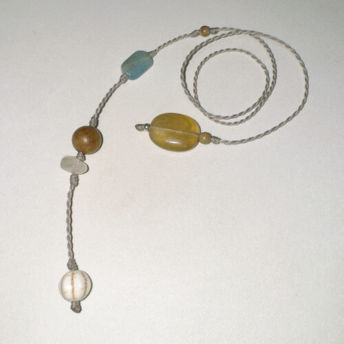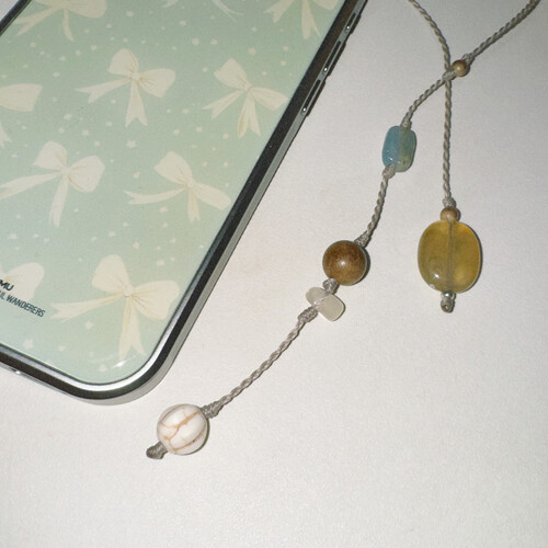 materials : 블루칼사이트, 문스톤, 합성터키석, 우드, 아크릴, 글래스, 남미실