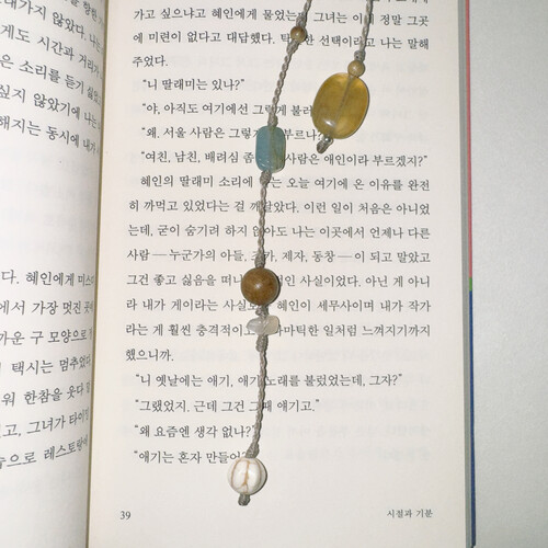 정성스럽게 엮어 제작한 끈책갈피입니다.