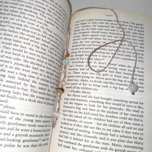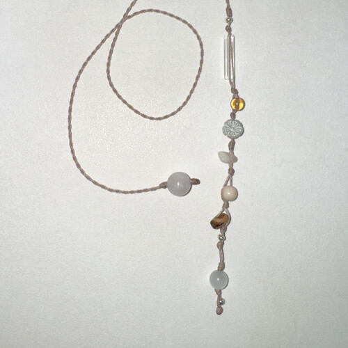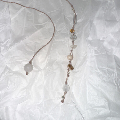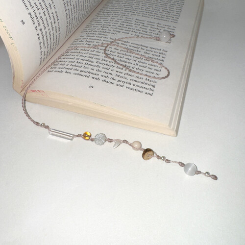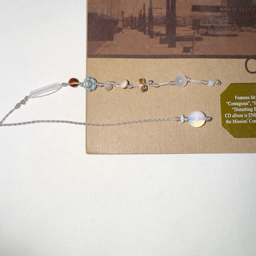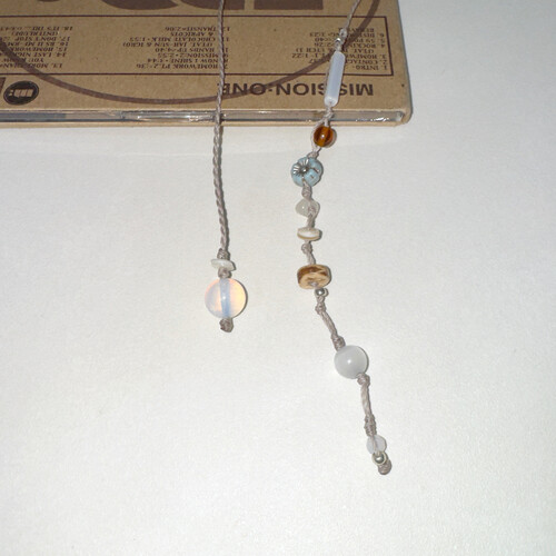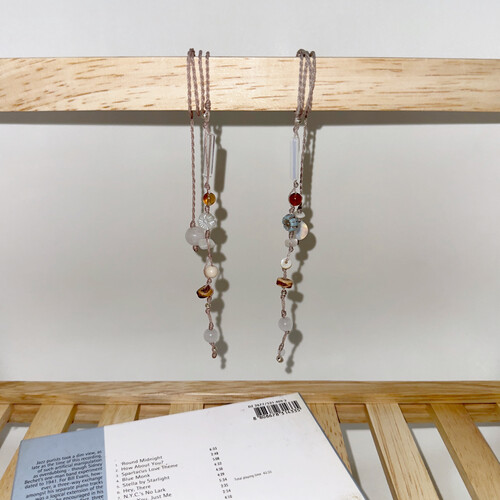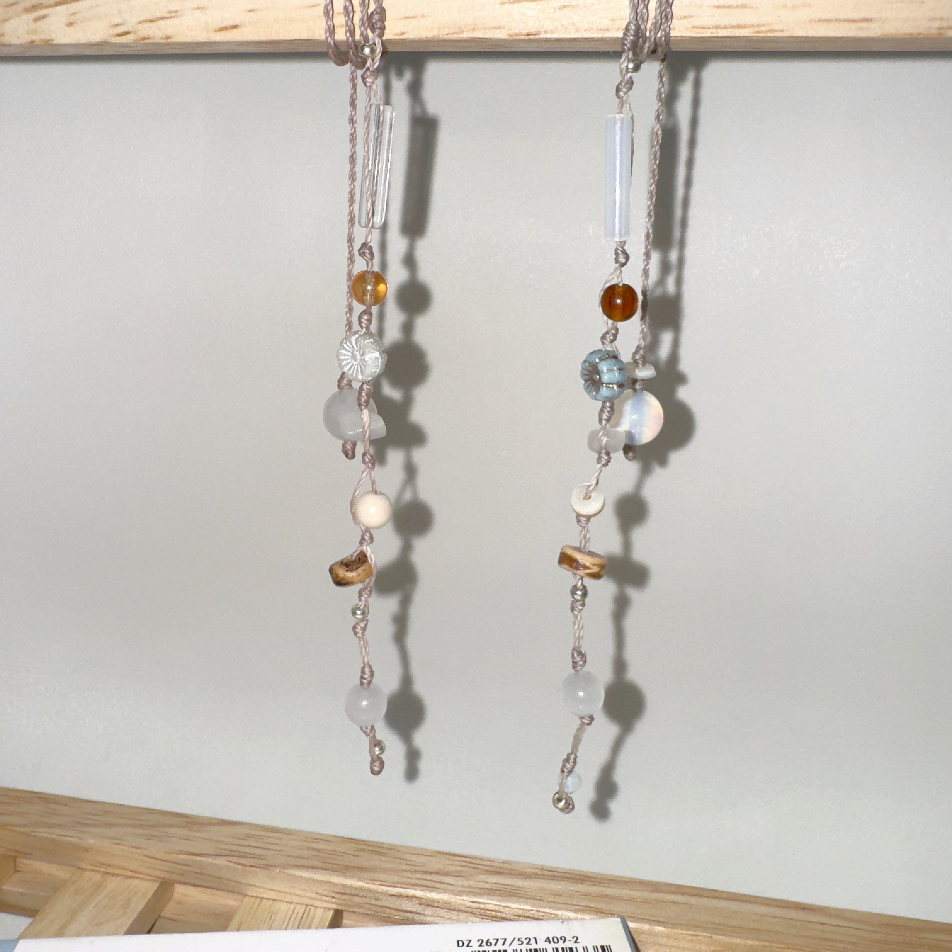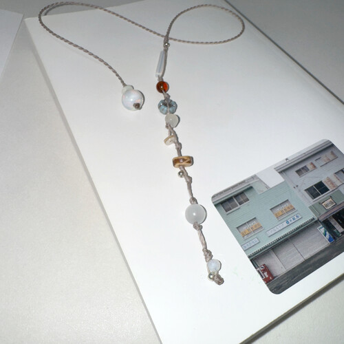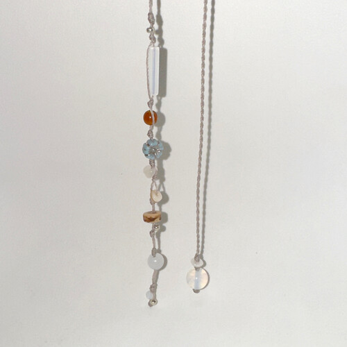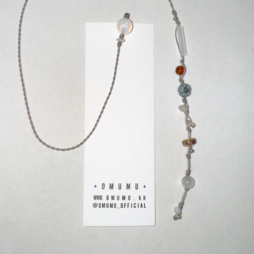 옅은 그레이와 우드톤, 투명비즈와 실의 색감 조합이 매력적이에요.
