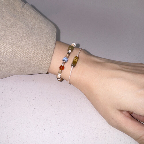 호안석 매듭팔찌와 레이어링한 모습입니다.