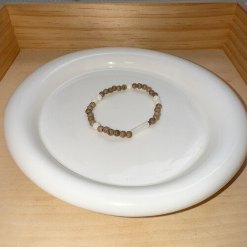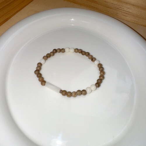 우드비즈들 사이에 넣어 제작한 늘어나는 나무비즈팔찌입니다.