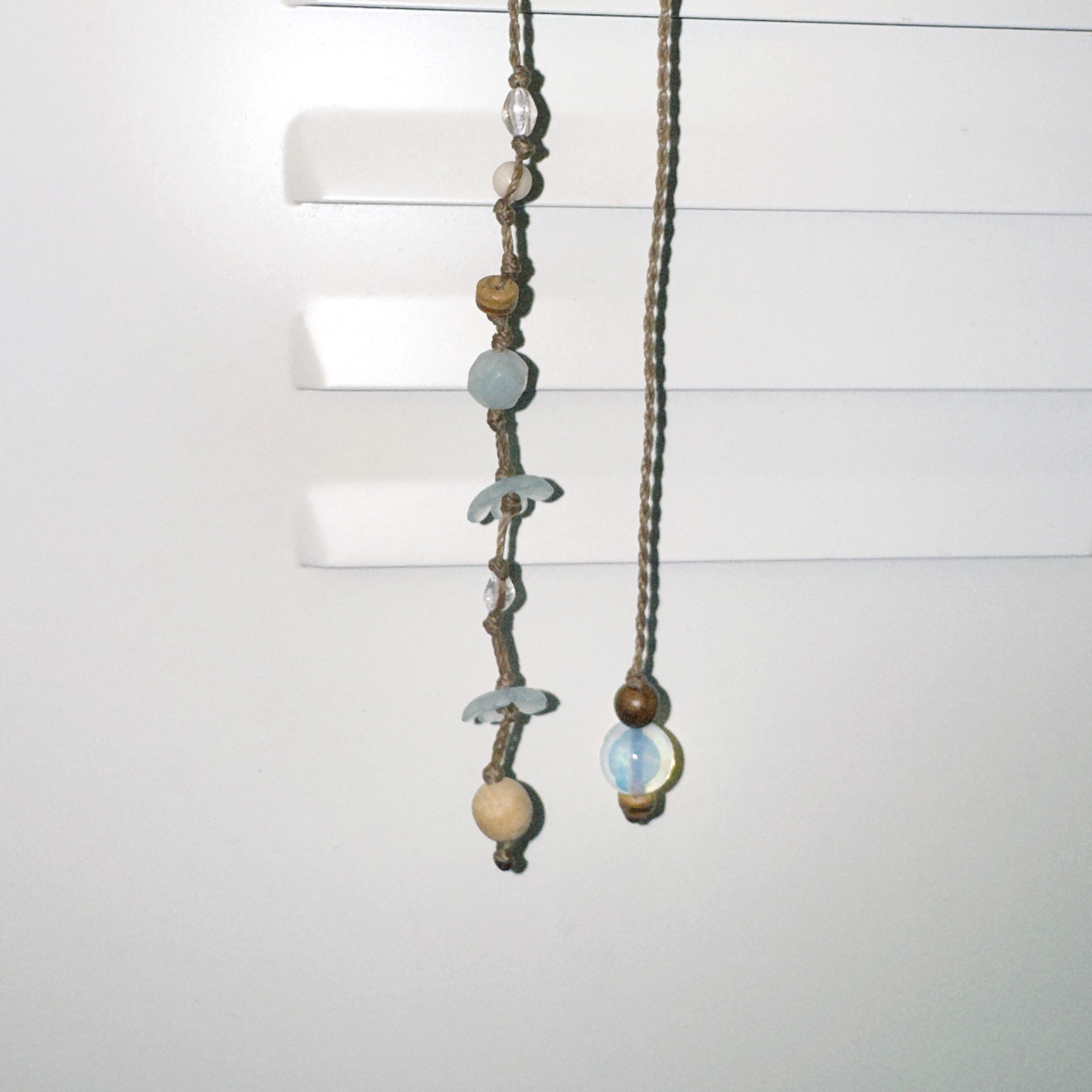 그리고 두 가지 톤의 우드볼들과 오팔의 색감이 어우러진 끈갈피예요.