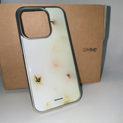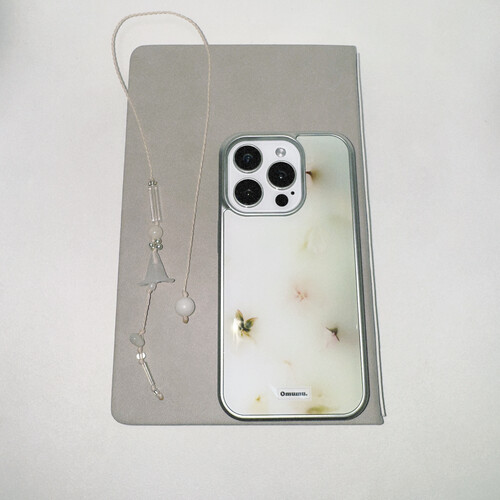 우윳빛과 핑크 꽃잎, 연두색 이파리들의 색감이 독특한 폰케이스입니다.