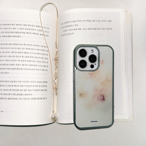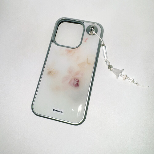 우윳빛과 핑크 꽃잎의 색감들이 유니크하게 어우러진 폰케이스입니다.
