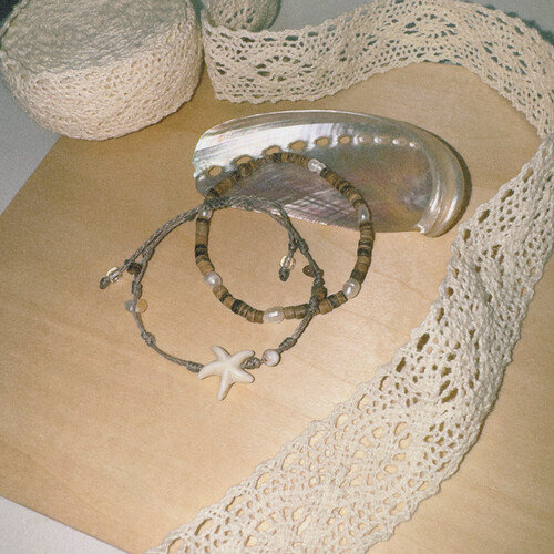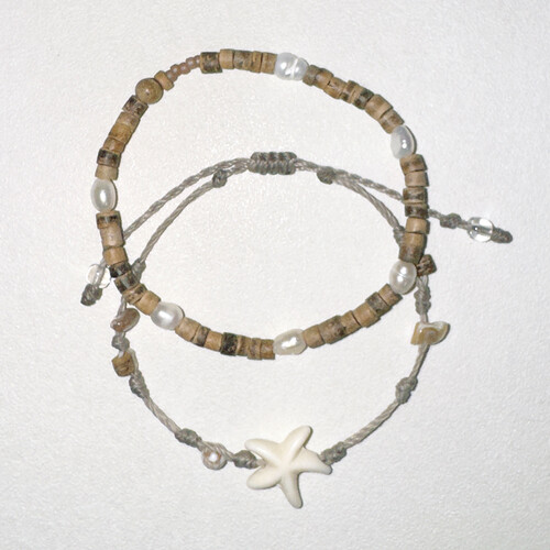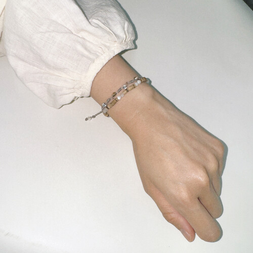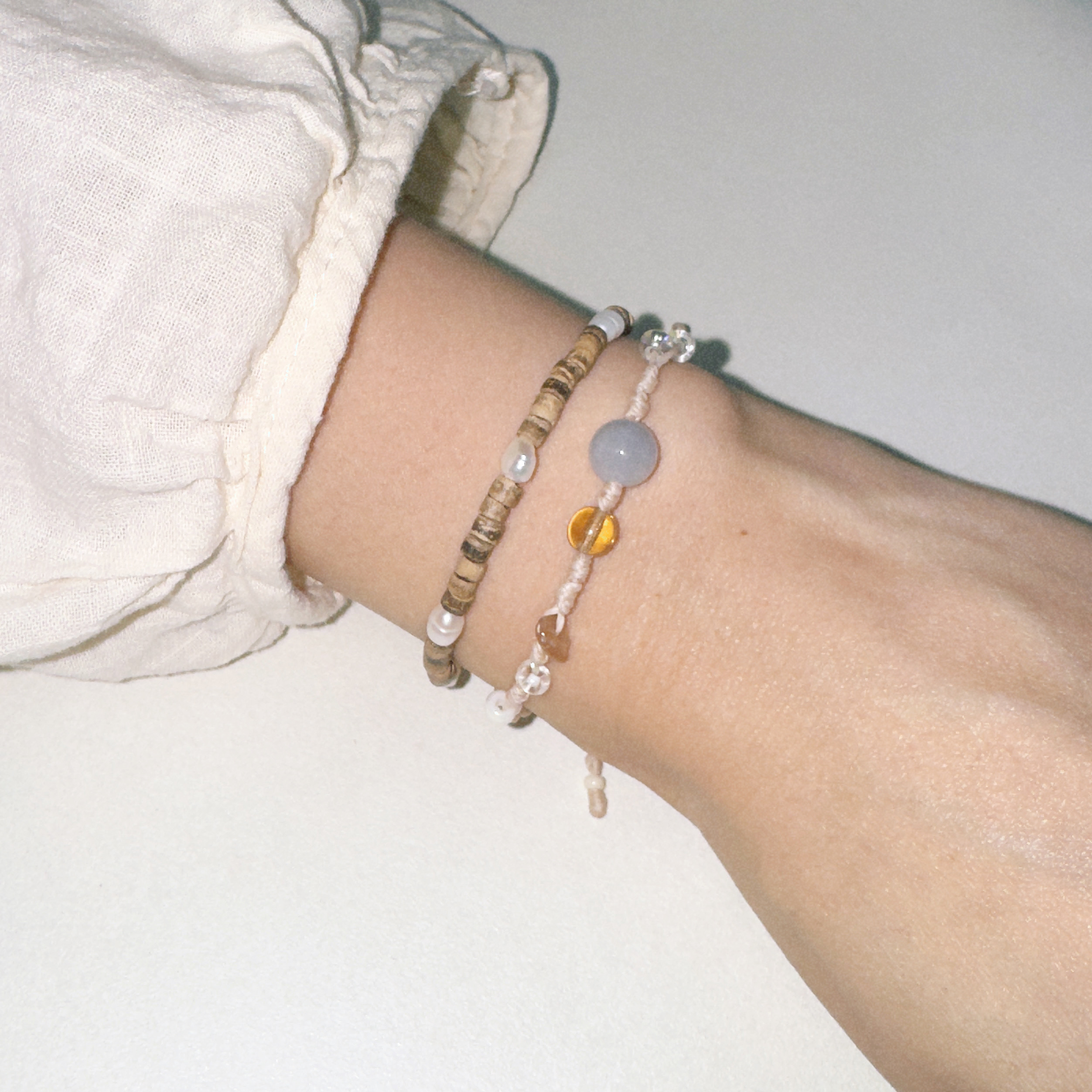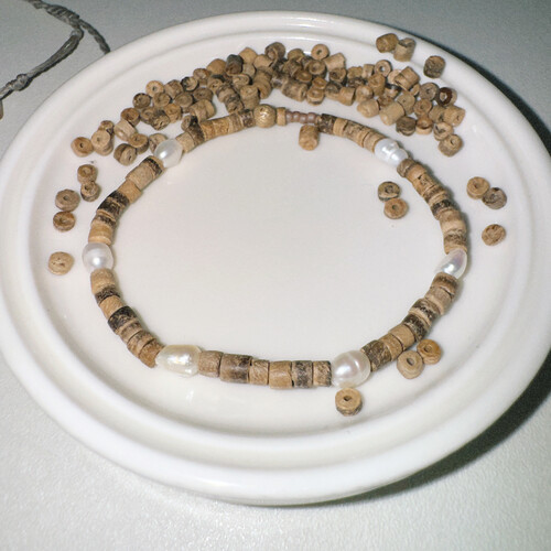사랑스러운 못난이 담수진주들을 나무비즈들 사이에 넣어 제작했어요.