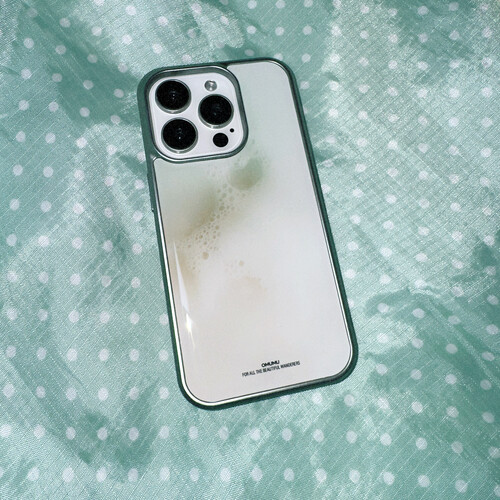 민트와 화이트 색감이 매력적인 비누거품 폰케이스예요.