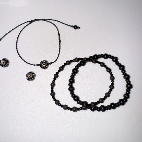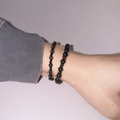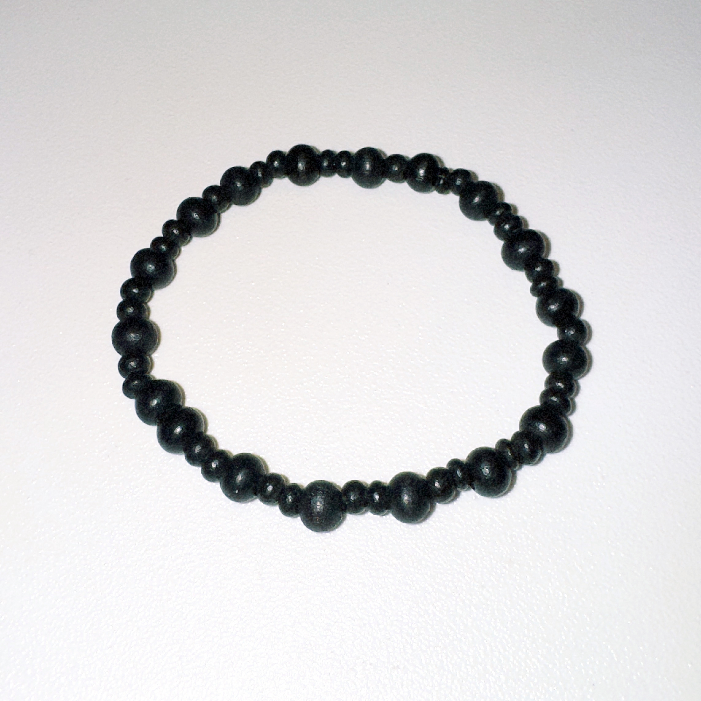 완전히 구 형태가 아닌 블랙 우드비즈들을 모은 팔찌입니다.