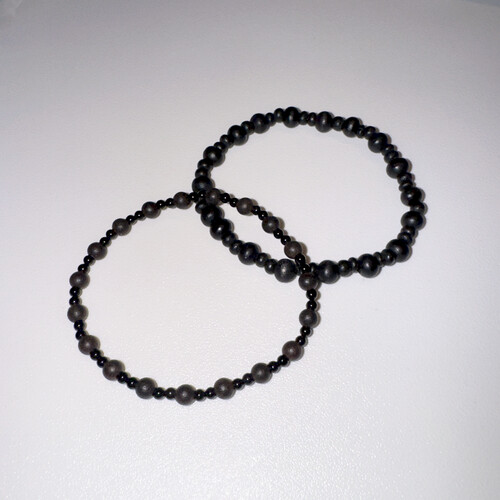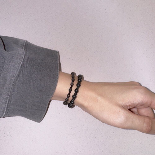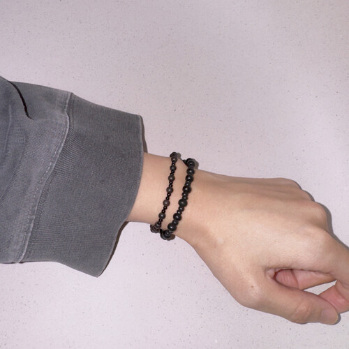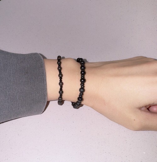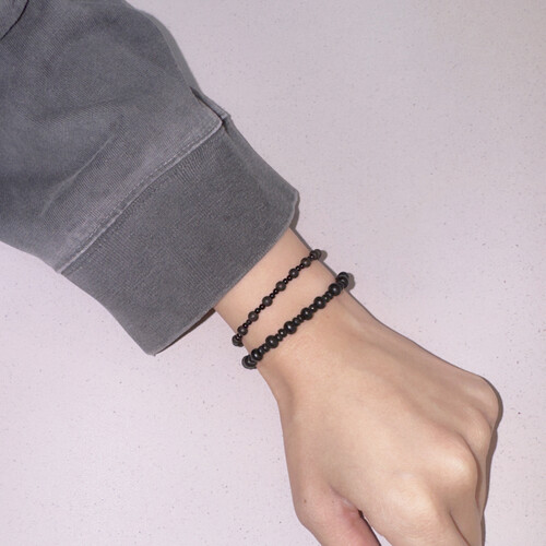 뮈르 우드팔찌와 비슷하지만 비즈의 배열을 바꾸고 유광 오닉스를 사용하여