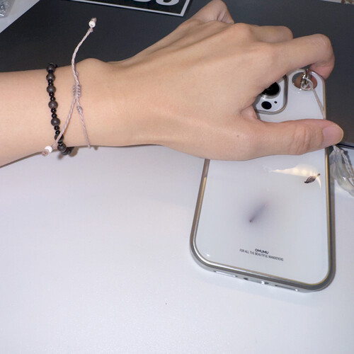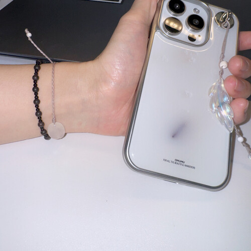 누아 우드팔찌보다 조금 작고 동글동글한 비즈들로 구성되어 커플룩으로 착용하기 좋아요.