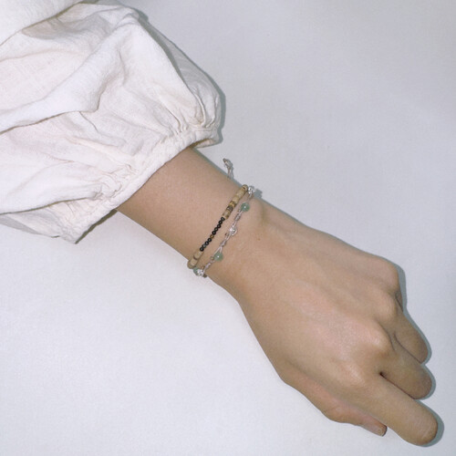 size : 총 둘레 약 14cm / 조절매듭으로 4cm 연장 가능
