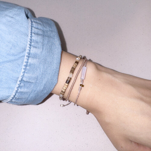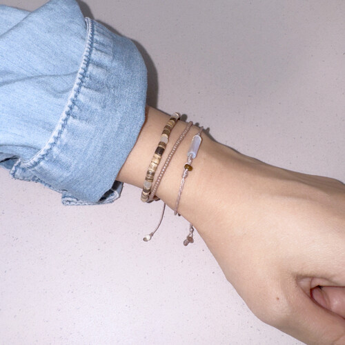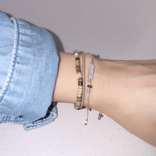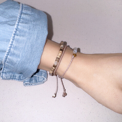 문 미스트 팔찌(원석 사이즈 M) + 코코넛 젤리 실팔찌와 매치한 모습입니다.