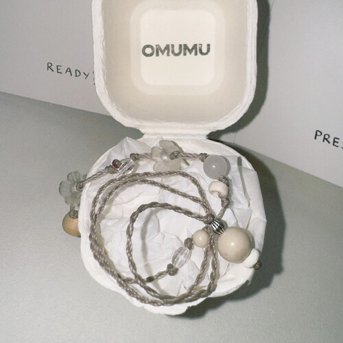 OMUMU 하얀색 접시꽃 비즈책갈피
