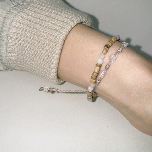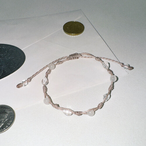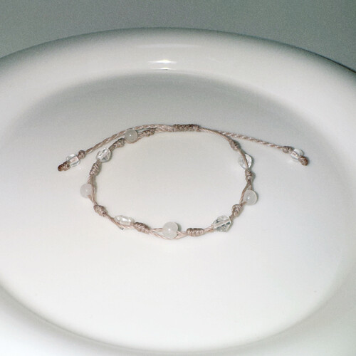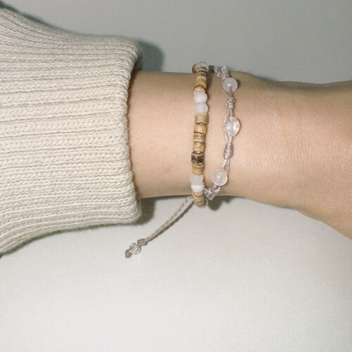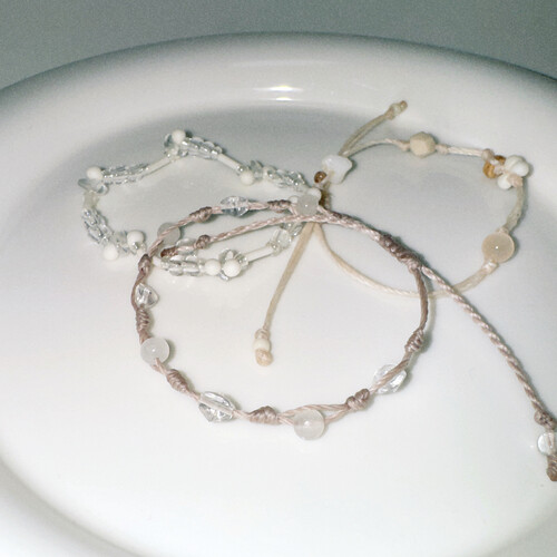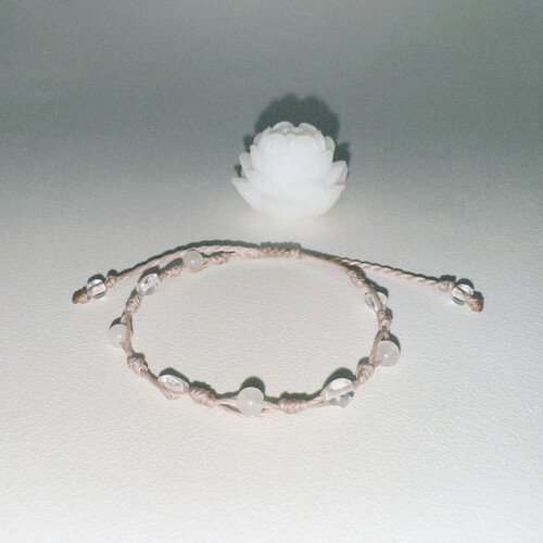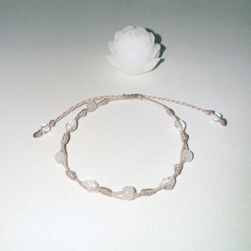 하얀 연꽃을 모티프로 제작된 매듭 실팔찌입니다.