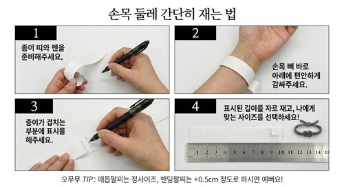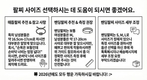 size : 기본 사이즈(둘레 약 14.5cm 내외, 3cm 정도 늘일 수 있어요)