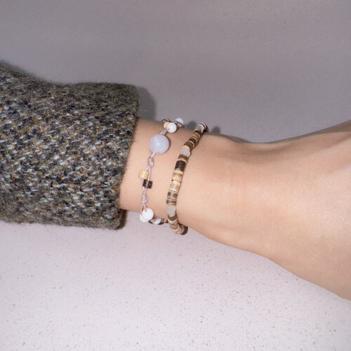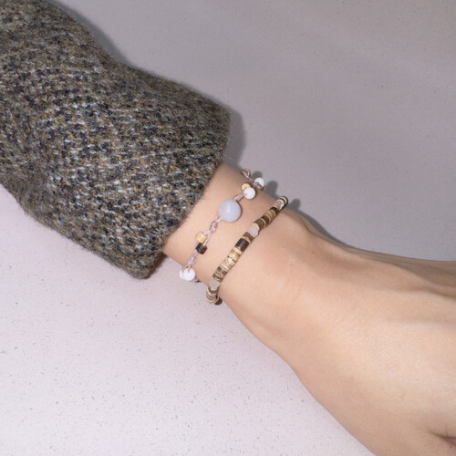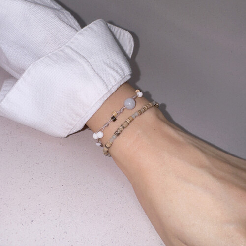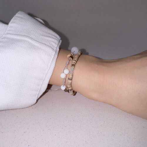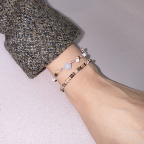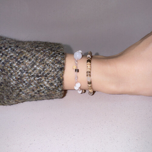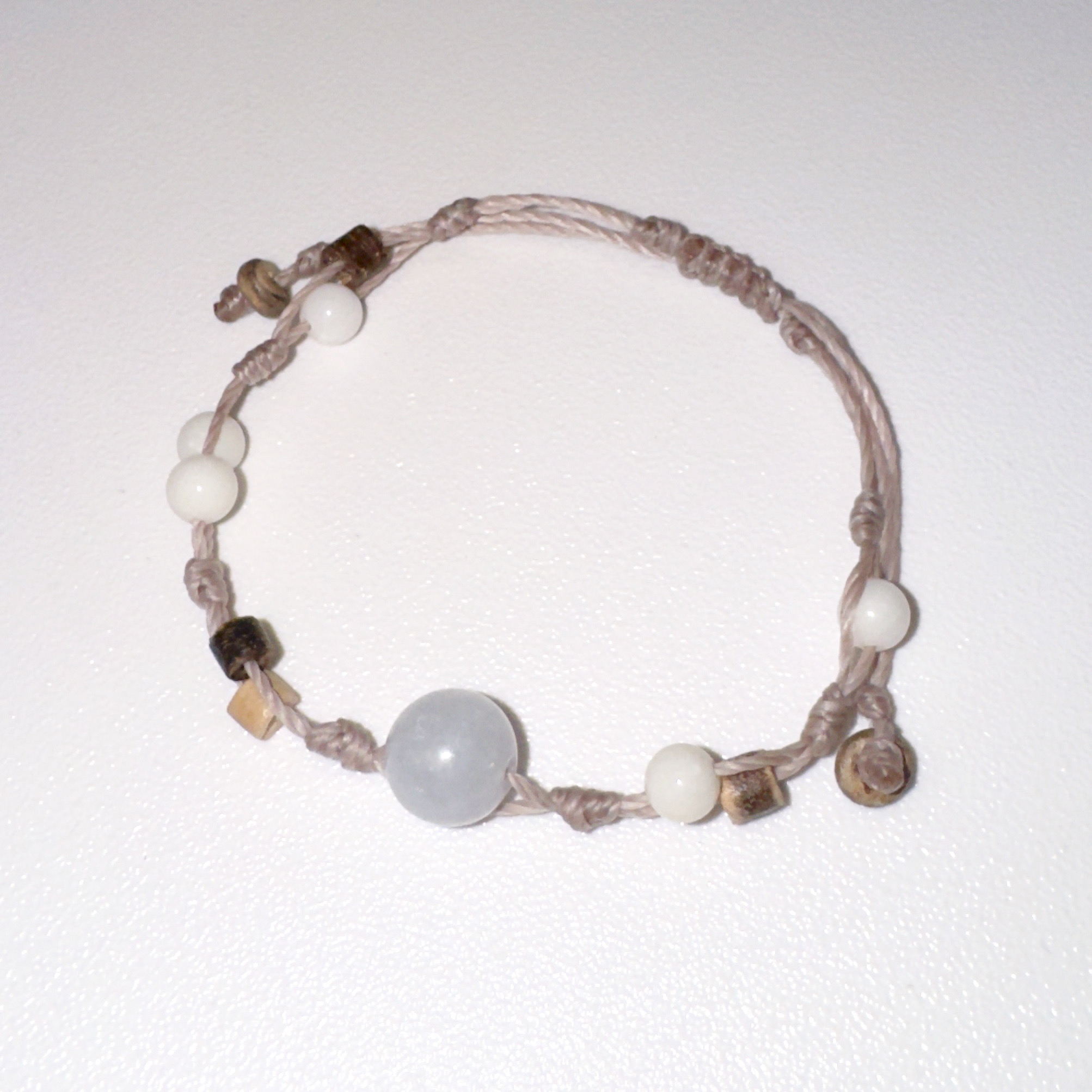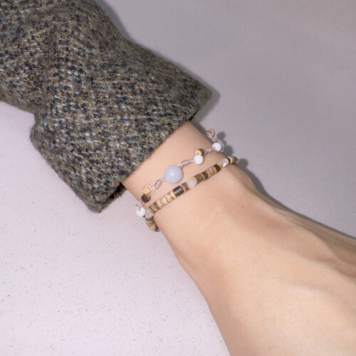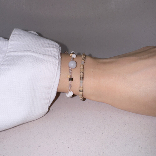 size : 기본 둘레 약 14cm 내외 / 조절매듭으로 약 4cm 연장 가능